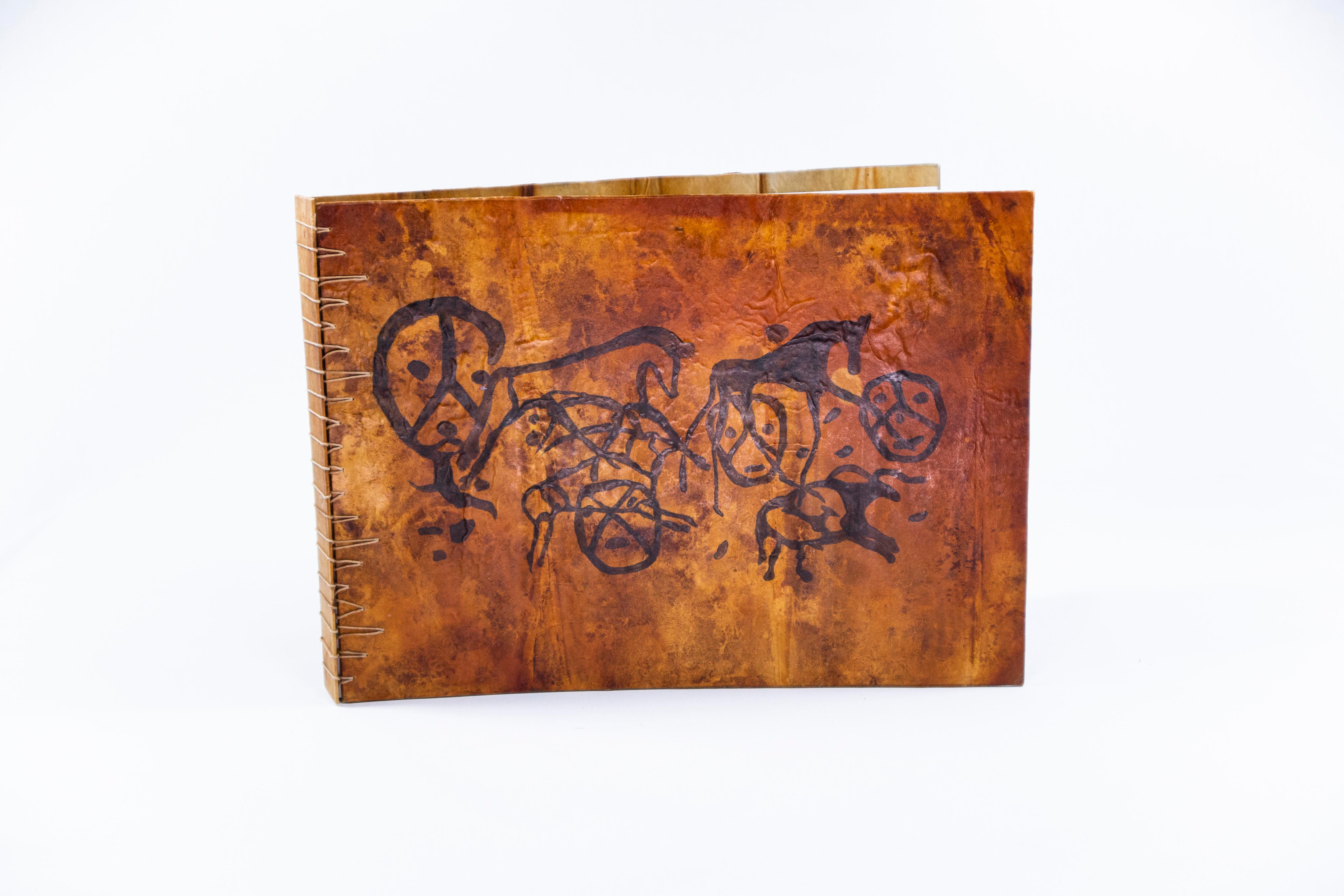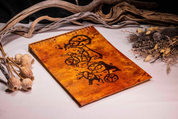 Albümün ön ve arka kapak dış yüzleri pas baskı kâğıt ile kaplanmıştır. Ön kapaktaki resimler savaşçıların olduğu bir sahneyi temsil etmekte olup, Eski Türk çağı kaya resimleridir. Kapak kâğıtları balmumu ve parafinle yapılan özel bir karışımla kaplanmıştır. 120 gr beyaz renkte 8 adet folyodan oluşan defter, Belçika cildi ile ciltlenmiştir. Tek ve size özel.